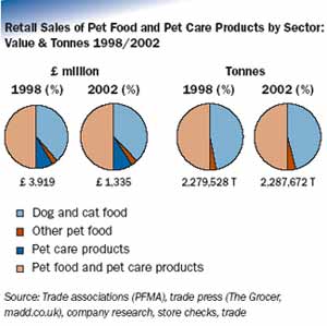 PAH offers foods and accessories for dogs, cats, small animals, fish and garden birds. They are well known for their food ranges, which are broader and more specialized than those found in supermarkets and indeed many pet shops. With accessories PAH try to present interesting, value for money ranges. They have some own label products, principally small animal food and cat litters, and the own label strategy is being extended to dog and cat foods in 2004.