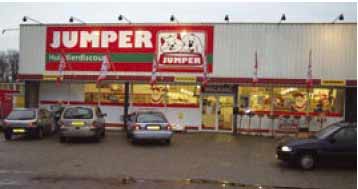 The Jumper stores are typically located on the outskirts, peripheral roads or access roads from city centres to the suburbs. The locations are characterised by their accessibility and ample car park facilities. A large number of Jumper stores have been set up as "shop-in-the-shop" outlets in the leading Dutch garden centre chain stores. High visibility and easy accessibility are important factors in choosing a location for a store. The outlets are located in cities with populations of 35,000 residents or more.