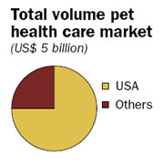 Thanks to the humanisation trend in the pat industry, the pat health care industry in America is a continually growing market. The growth of the pet health care market applies not only to the dog and cat segments, but to all of the pat segments. Moreover, spending has increased both in terms of visits to the veterinarian as well as for purchases of self-medication products. With approximately 65 million dogs and 78 million cats, it is no wonder that the American market is worth billions of dollars.