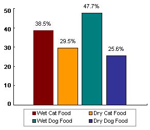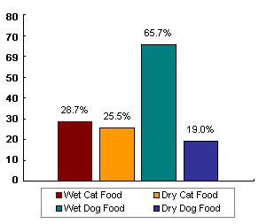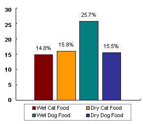On advertising intensity, the ranking of Wet Cat Food is very high, but the other Pet Foods categories fare much worse with not much better than average ratings. Again the Private Label shares vary considerably and so the other factors are at work. Ratings across all important drivers must be used to combat Private Label development.