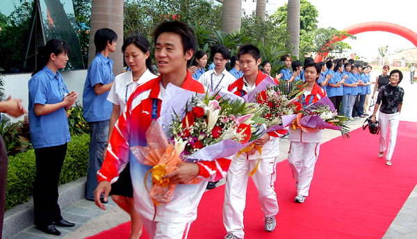 Members of the Guangdong dive club have won three Olympic championships in Athens 2004